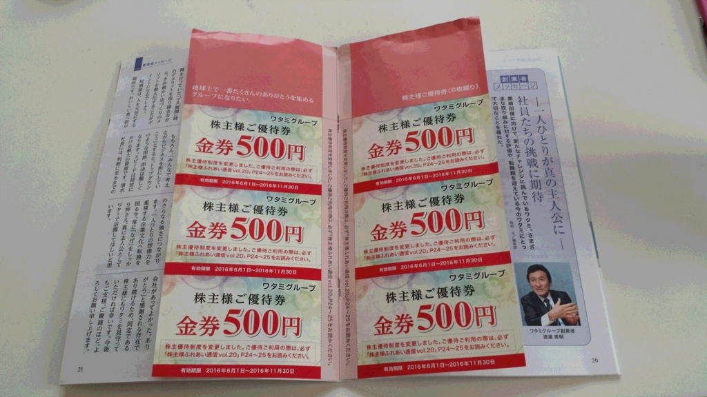 優待券(500円)券を持っている株数によってもらえます。
